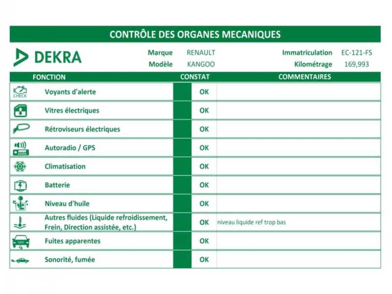| Etat Moteur | Aucuns défauts |