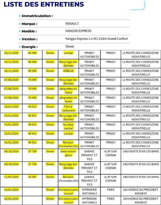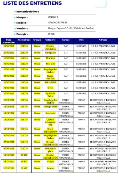| Etat Moteur | Aucuns défauts |