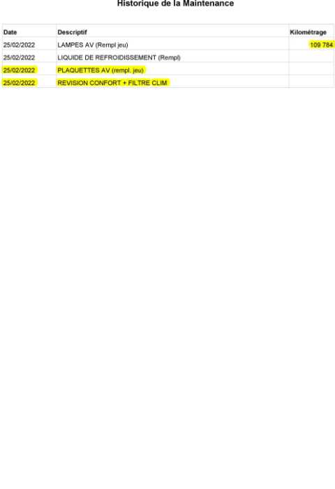 | Etat embrayage | Aucuns défauts |