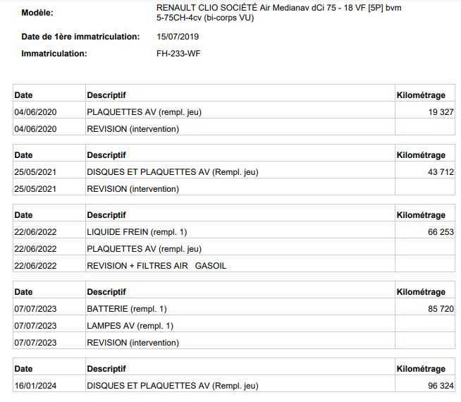 | Etat freins AV | Aucuns défauts |