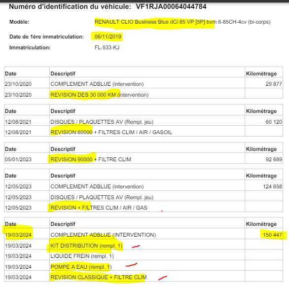 | Etat Moteur | Aucuns défauts |