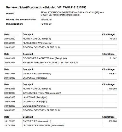| Etat Moteur | Aucuns défauts |