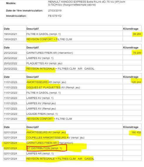 | Etat Moteur | Aucuns défauts |