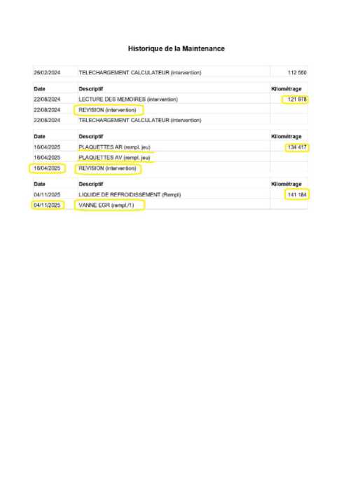 | Etat Moteur | Aucuns défauts |